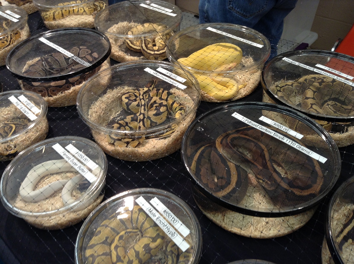 Federal regulations such as the Animal Welfare Act (AWA) do not offer adequate protection for reptiles, amphibians, and fish, allowing them to be freely traded and sold by breeders and retailers without licensing or proper care standards. As a result, animals at shows endure inadequate housing, transport injuries, stressful handling, malnutrition, disease, and premature death.