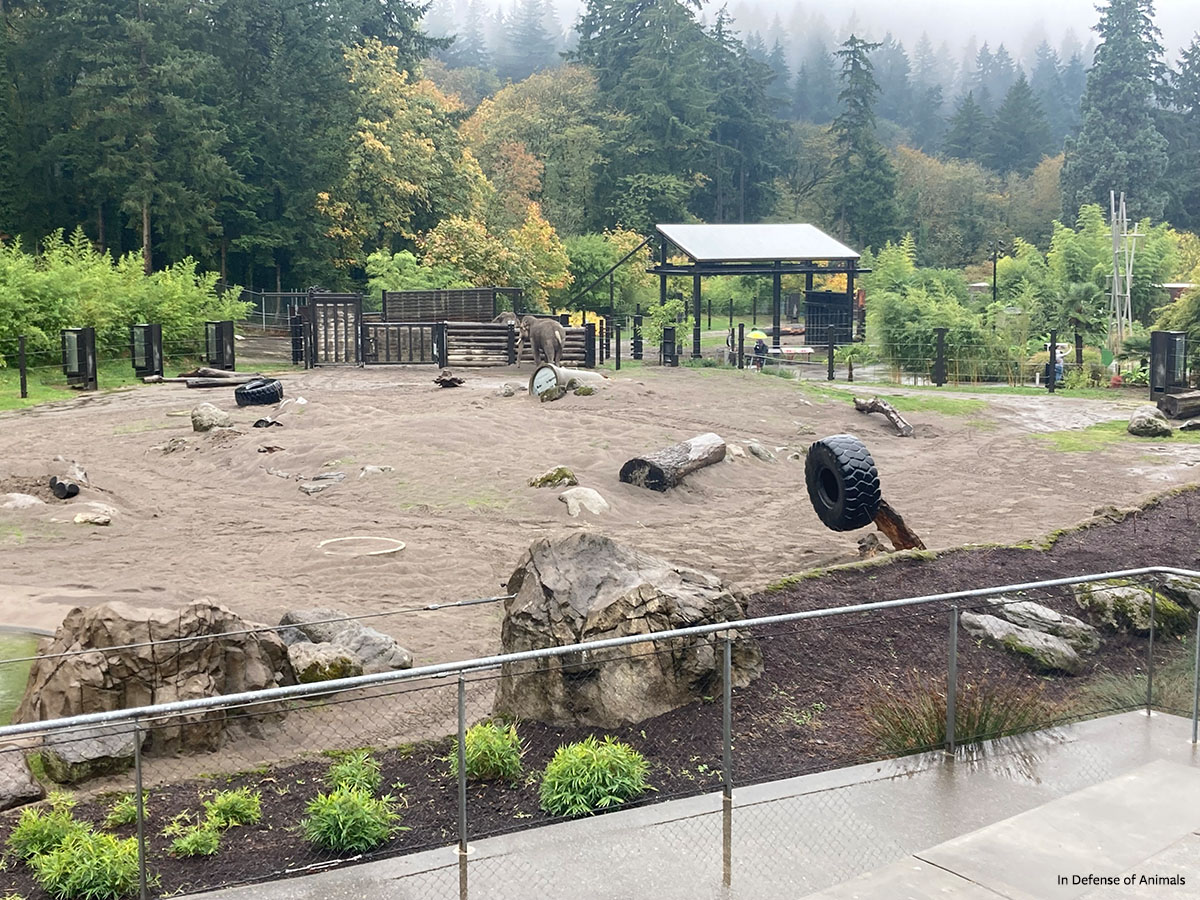 Oregon Zoo’s elephant exhibit is completely barren of any foliage, which elephants require. A 2021 zoo-funded study ridiculously claims the new exhibit offers “complexity” and opportunities to explore because they can’t see the other side of the exhibit, but an elephant can cross 2.47 acres in less than one minute. After seven years, it’s safe to conclude they have discovered everything there is to see. Perhaps worst of all, there is nowhere to go to experience any privacy or escape assaults from other bored and stressed elephants.