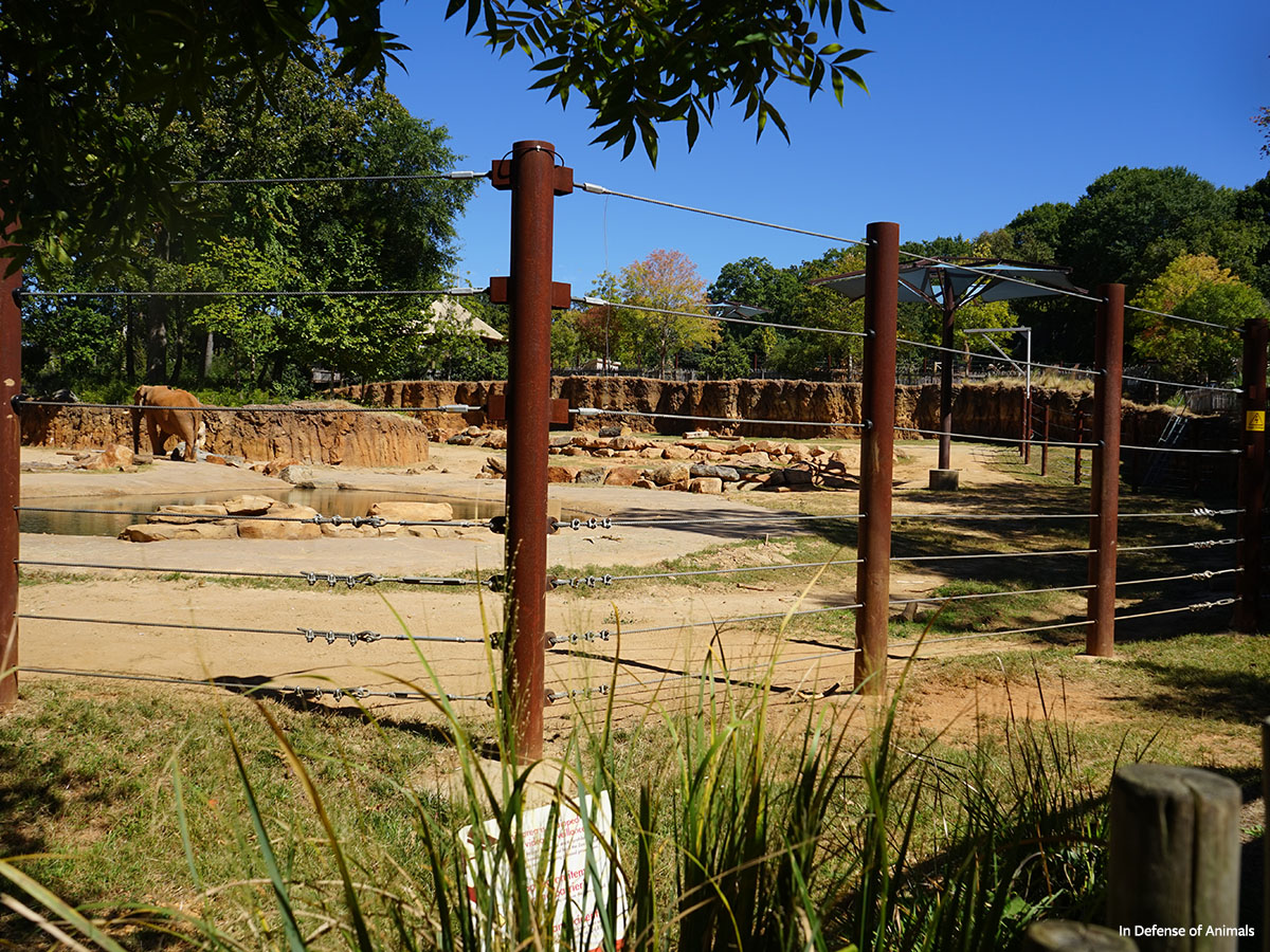 Though the enclosure size meets the minimum standards of the Association of Zoos & Aquariums (AZA), it comes nowhere near to meeting the true needs of elephants. A report by Dr. Rob Atkinson and Dr. Keith Lindsay explains, “It takes an elephant slightly over a minute to walk across a 1 hectare (2.5 acres) enclosure… a small enclosure simply cannot offer a sufficient diversity of experience.” And “…for animals that must remain in captivity, 100 hectares (250 acres) or more of diverse, natural habitat would offer individual elephants the opportunity to live fulfilling lives.”