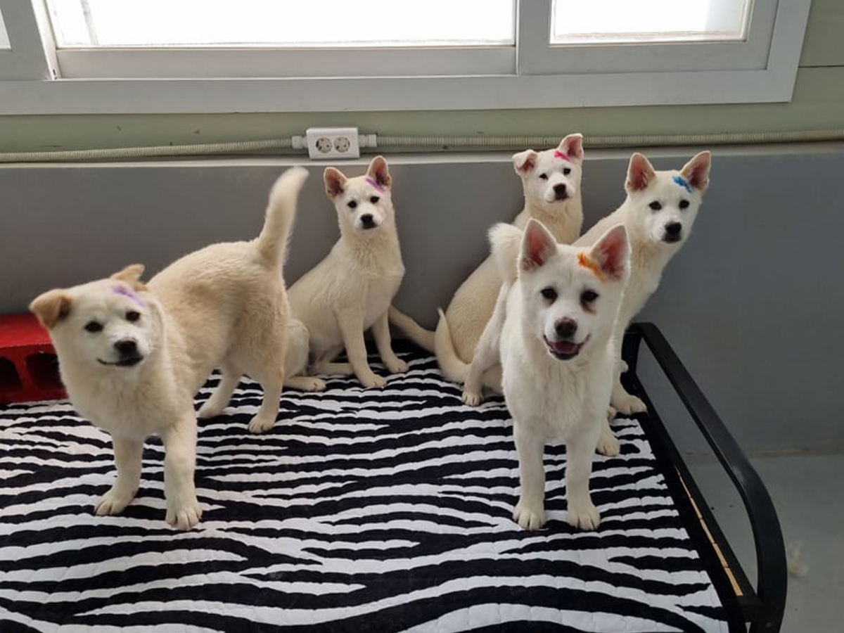 We recently told you about an amazing dog meat farm rescue we conducted with Jindo Love Rescue in South Korea, where the dogs were in imminent danger of being killed. Thanks to our actions, this illegal farm has been permanently shut down and will no longer be able to send dogs off to their slaughter. The dogs are safe now, and we want you to know how well they’re all doing!