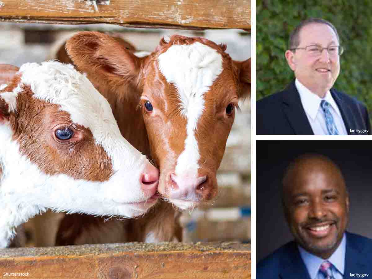 Councilmembers Paul Koretz (top right) and Marqueece Harris-Dawson (bottom right) introduced the resolution which will save the lives of farmed animals.