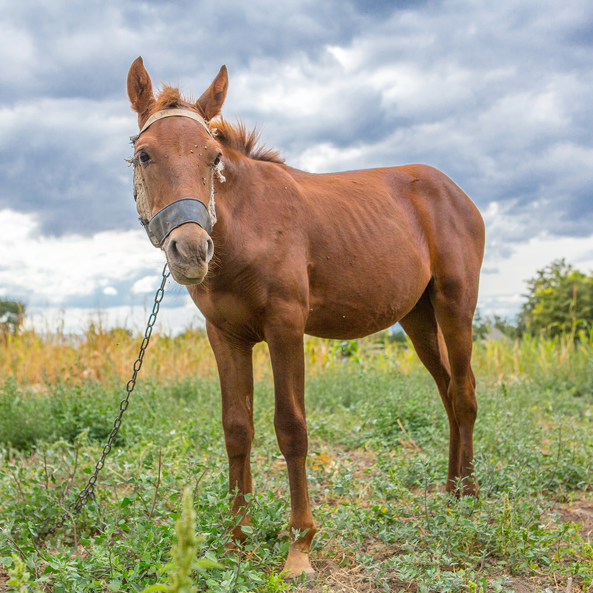 Even though horses and other farmed animals may be tethered to safely confine them, or give them opportunities to graze, this should only ever be done for short periods and they must be supervised or consistently checked. They’re vulnerable to many of the same hazards dogs are when left tethered, and if confined this way must be in a safe area free from obstructions, provided with food, water, and shelter, and regular opportunities to socialize and engage in natural behaviors.
