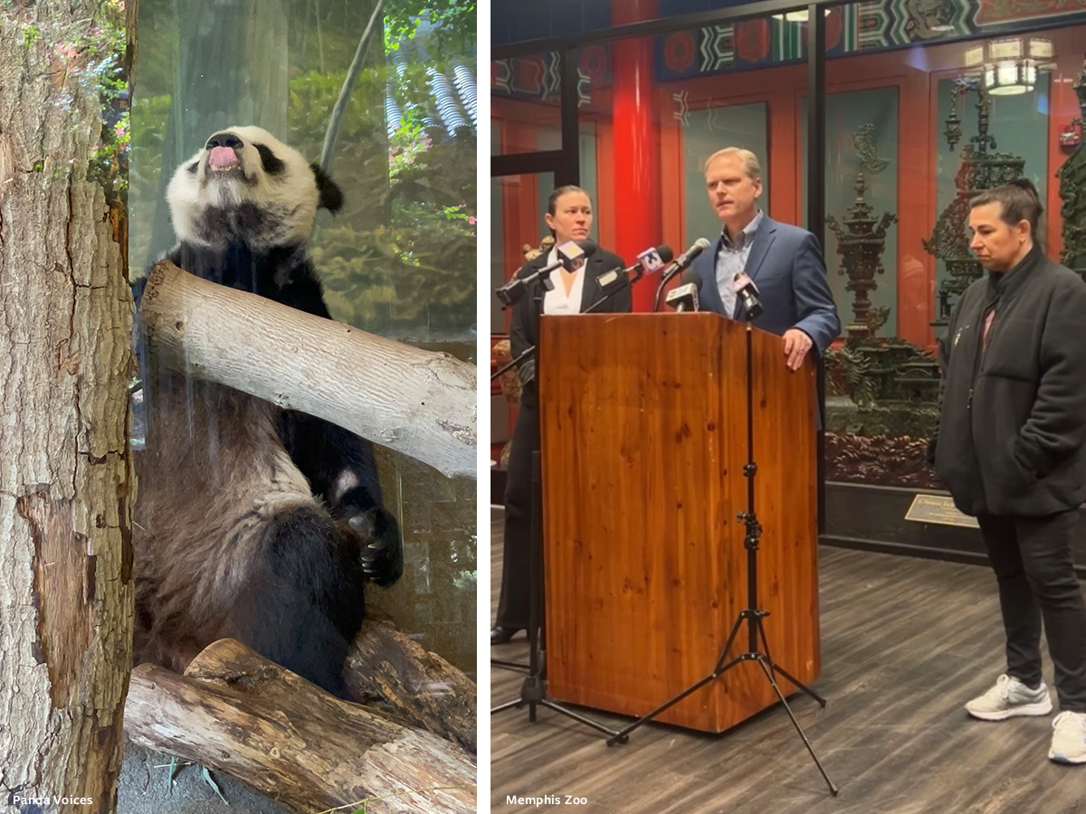 We and Panda Voices also worked to expose the pandas' suffering and alerted the Chinese Association of Zoological Gardens (CAZG) to the poor quality of food and care provided to the pandas. The Chinese zoo organization released a statement on March 10, 2022, acknowledging both pandas were underweight and suggested Memphis Zoo improve their diets by increasing food variety and protein sources to improve nutrition and help them gain weight. However, there is no evidence that Memphis Zoo implemented CAZG’s suggestions to improve the pandas’ diet.